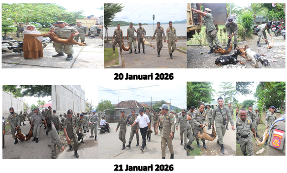 Respon Cepat Laporan Masyarakat, Sat. Pol. PP Kota Bima Dua hari Melakukan Penertiban Ternak yang Berkeliaran.