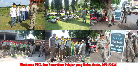 PATROLI PEMANTAUAN WILAYAH, SAT. POL. PP KOTA BIMA MELAKUKAN TEGURAN PKL, PENERTIBAN TERNAK LIAR DAN BELASAN PELAJAR YANG BOLOS PADA JAM EFEKTIF SEKOLAH DI AMANKAN