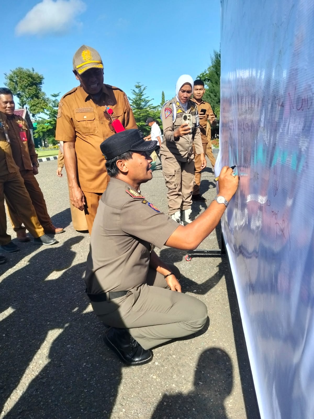 Setelah Apel Gabungan selesai Seluruh Pejabat dan ASN Lingkup Pemerintah Kota Bima menandatangani Komidmen Anti Korupsi Tahun 2025.